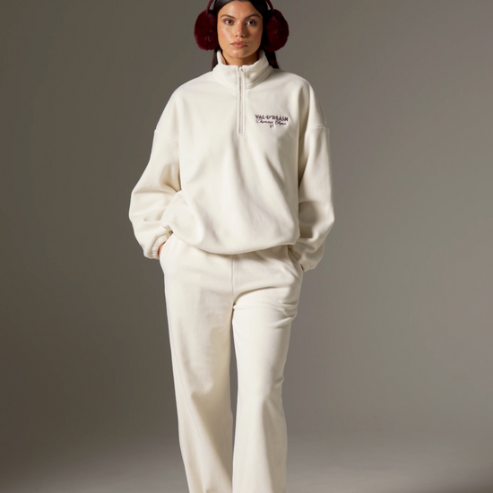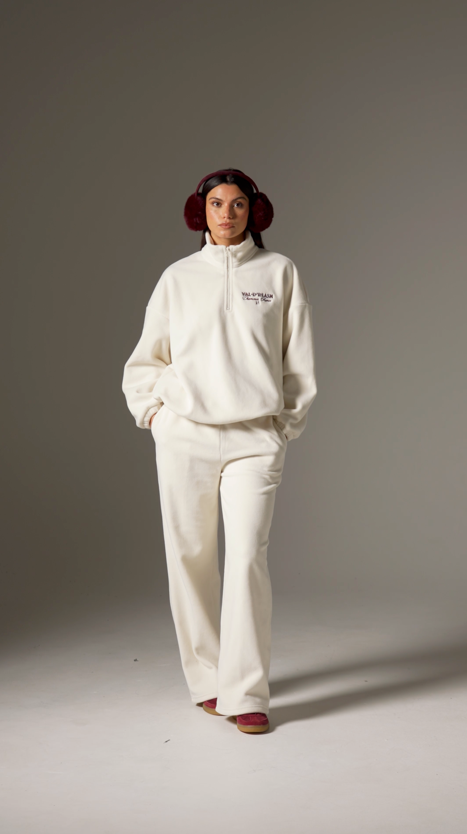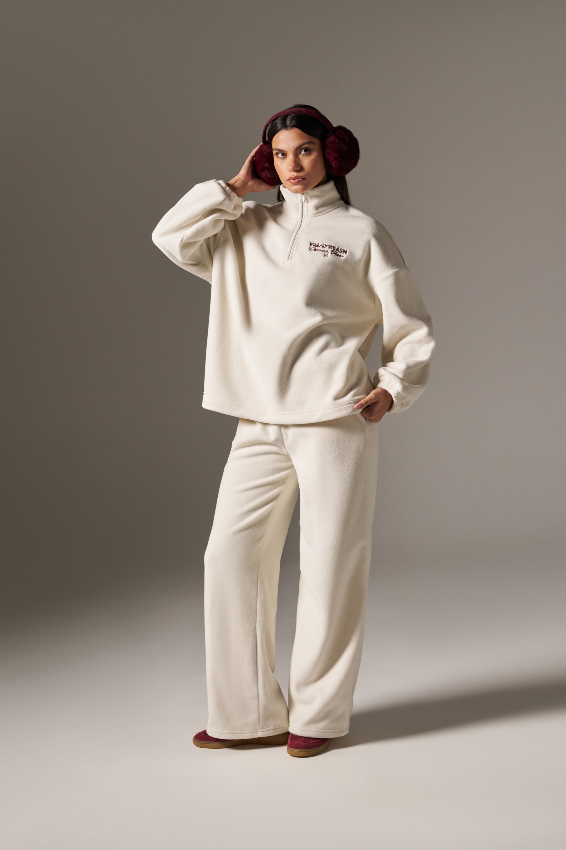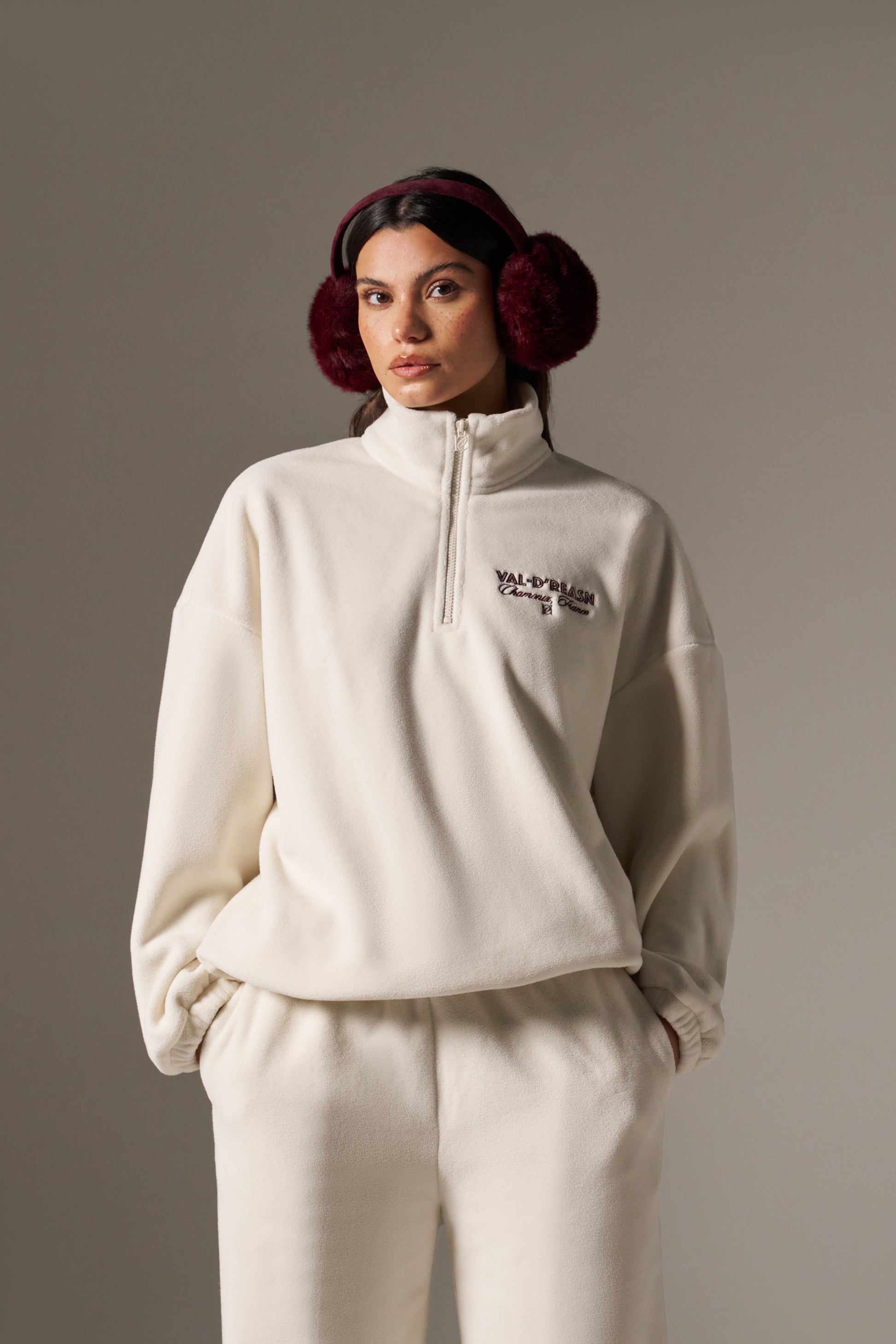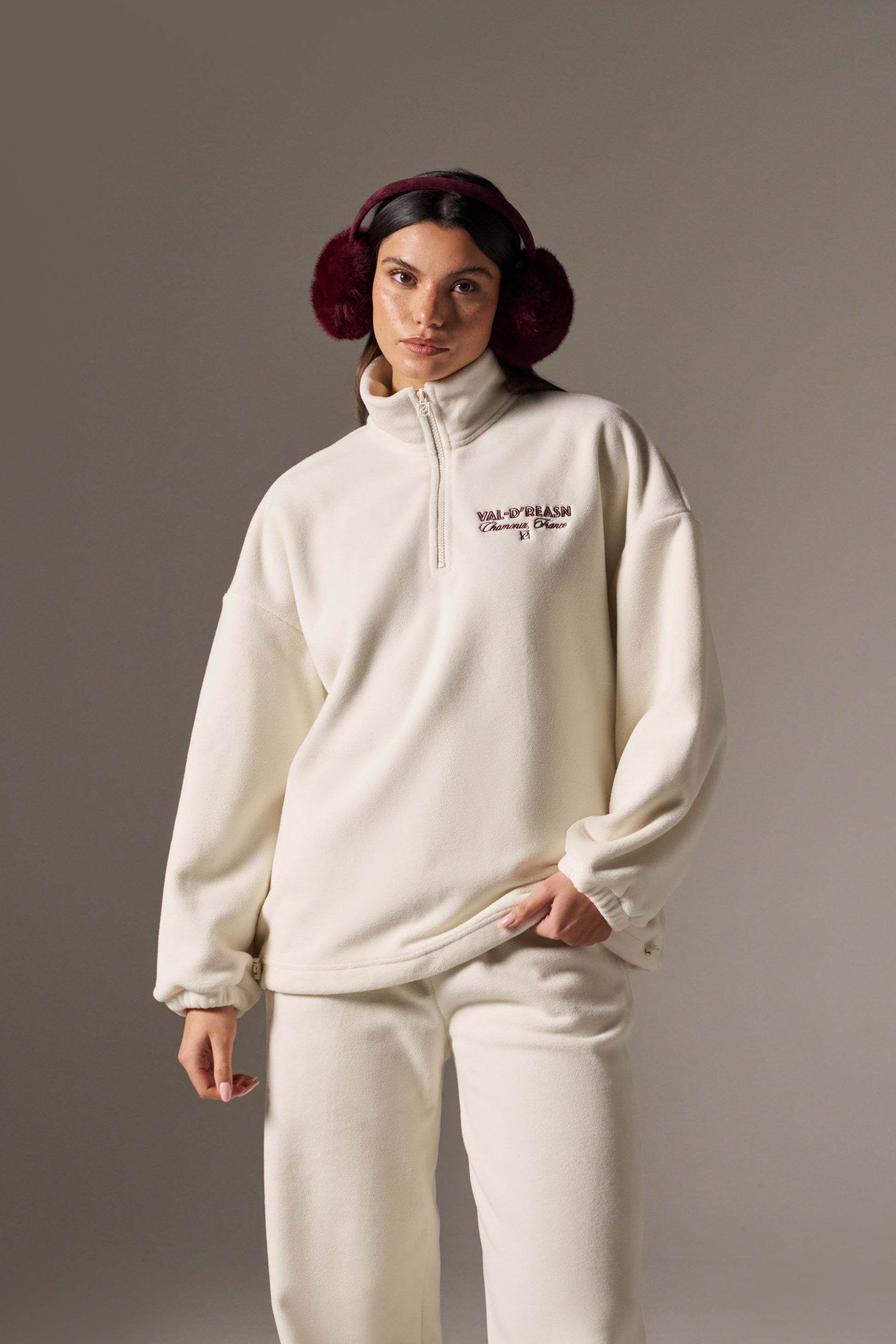 Oversized Apres Ski Fleece Quarter Zip Sweatshirt - Crème