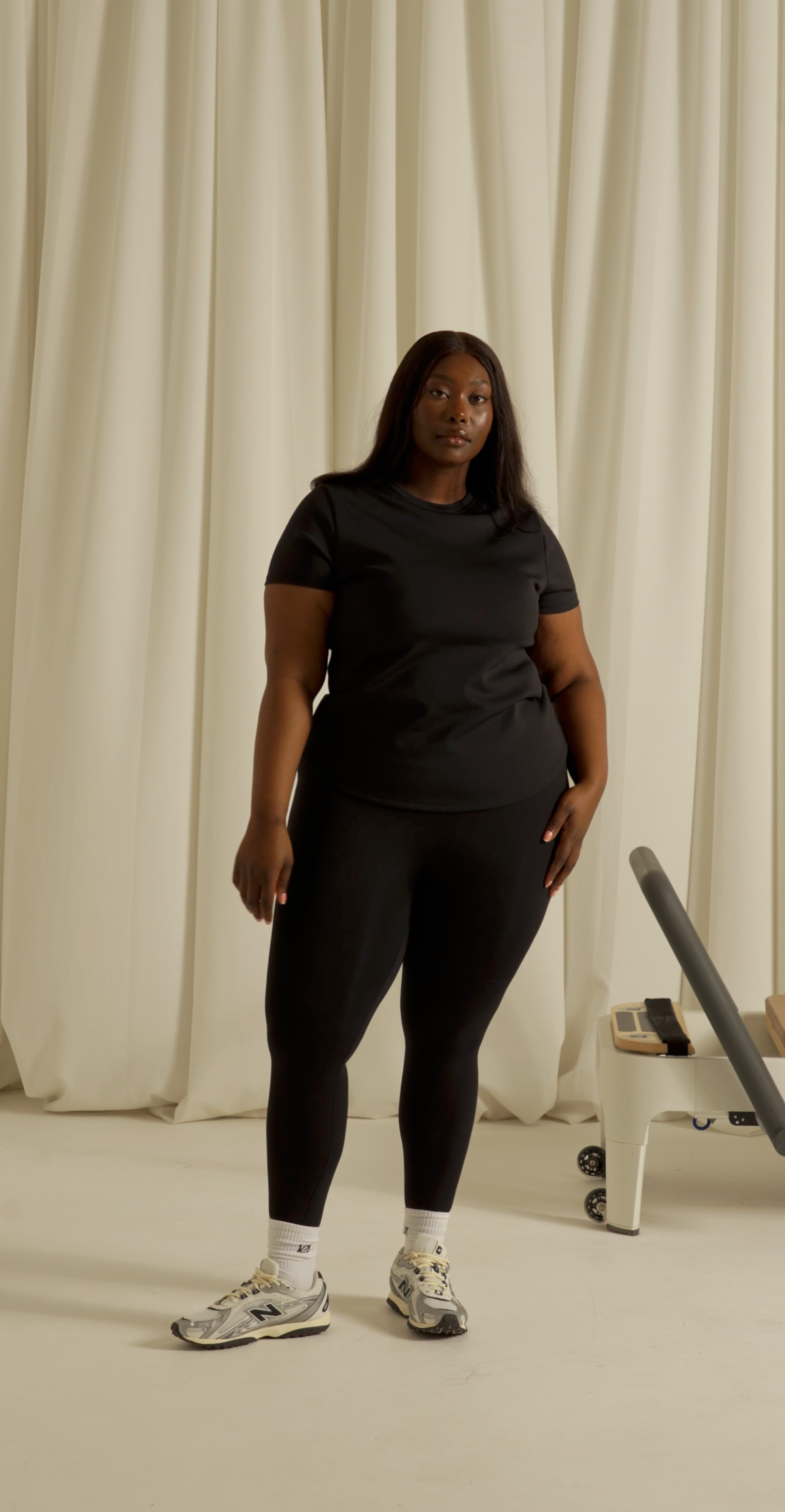 Introducing our Smoothform short sleeve top, a technical blend designed to smooth, support, and move with your body. The integrated bra eliminates the need for layering, offering structured support without underwire while maintaining a sleek silhouette. The breathable, moisture-wicking fabric adapts to your activity level, whether you're navigating your day or staying active. Pair with our Smoothform leggings and zip through jacket to complete the look.