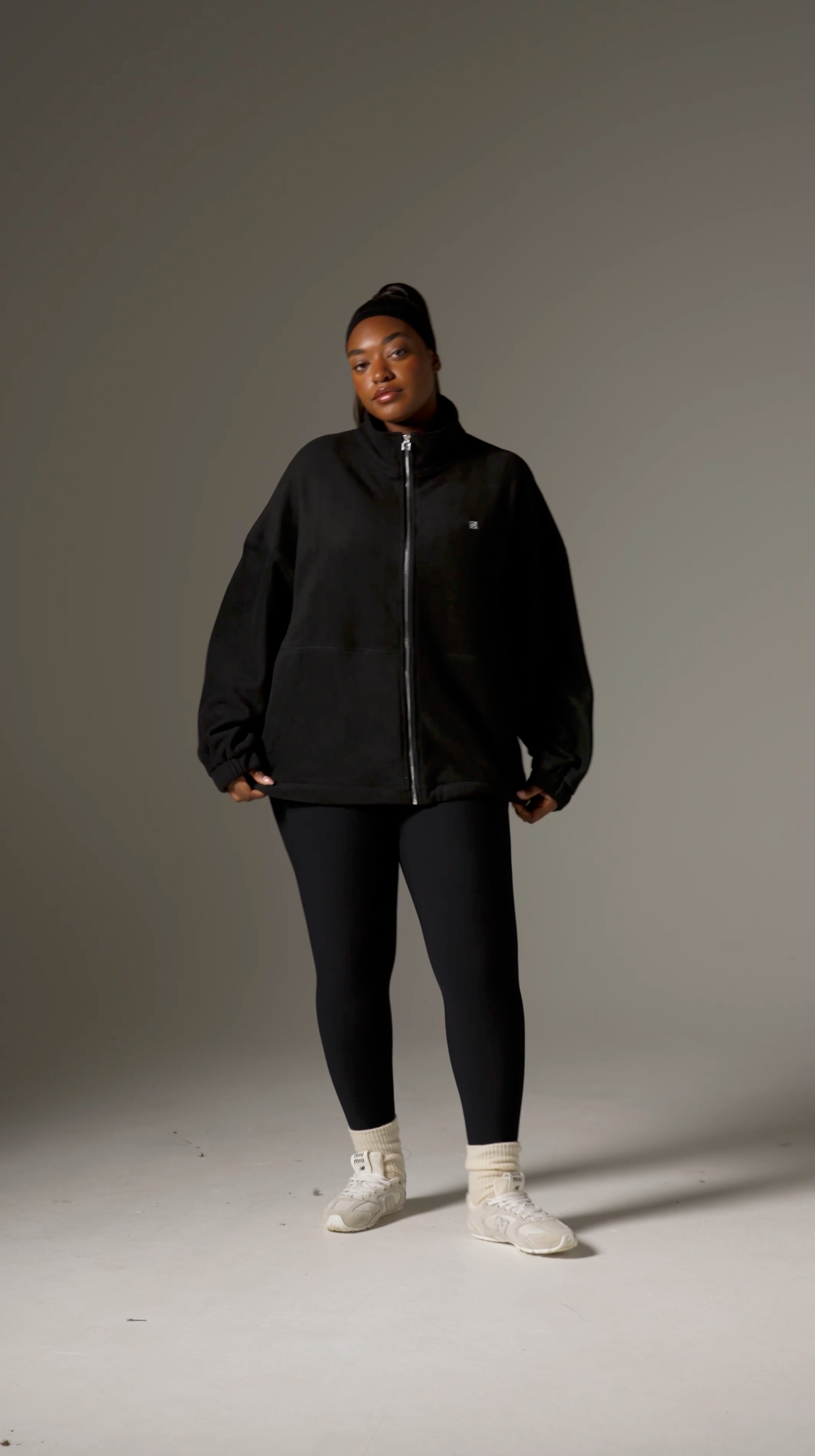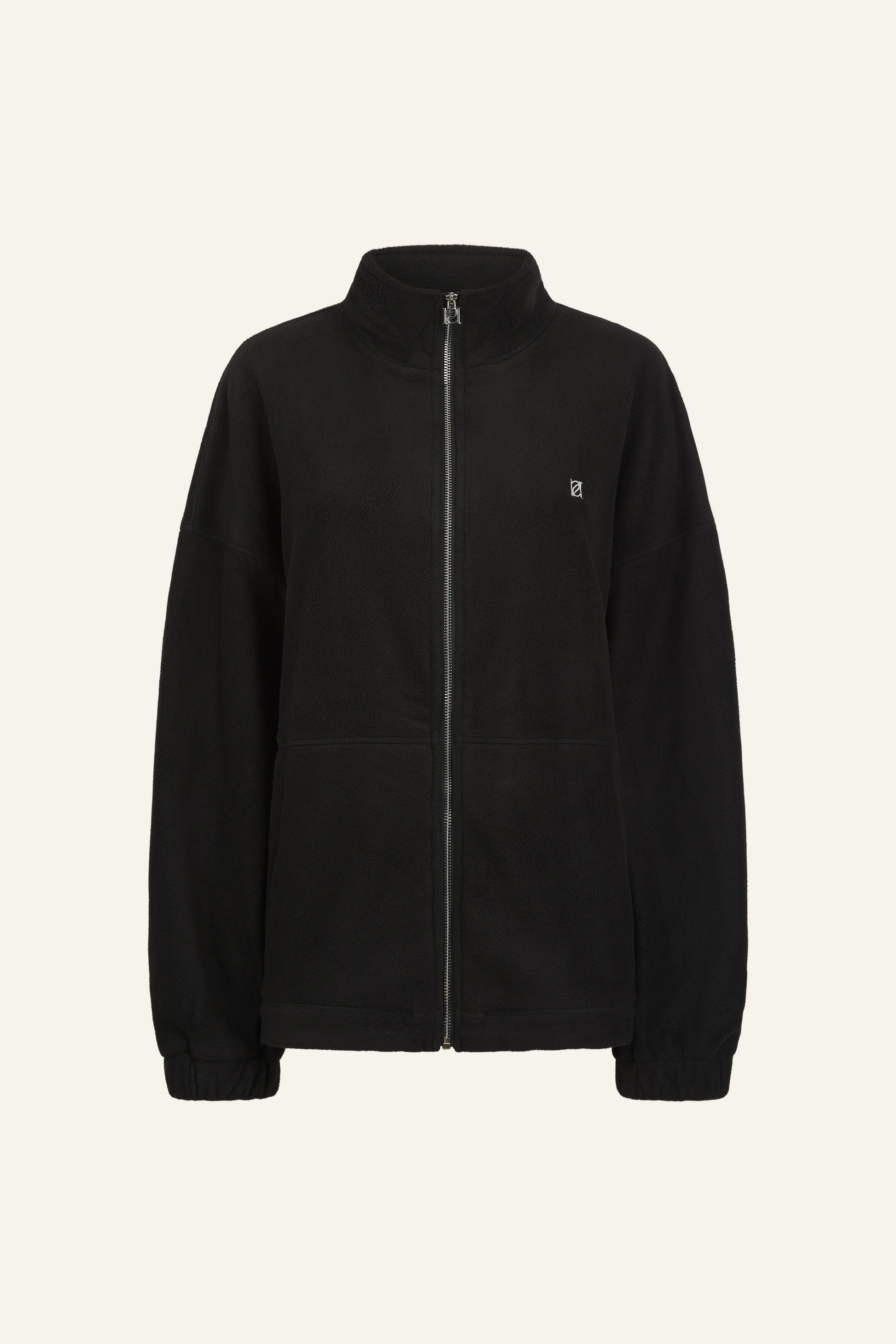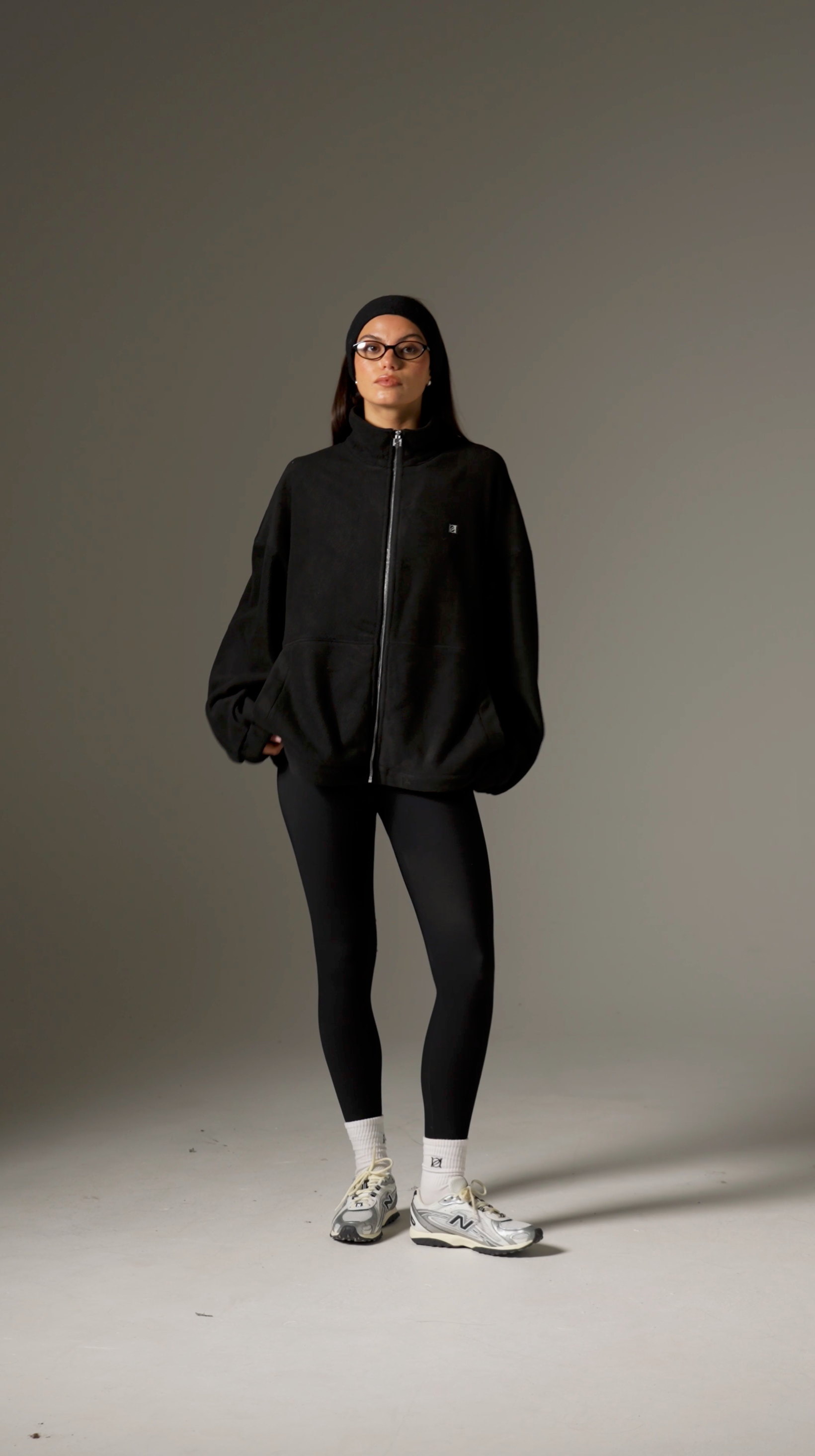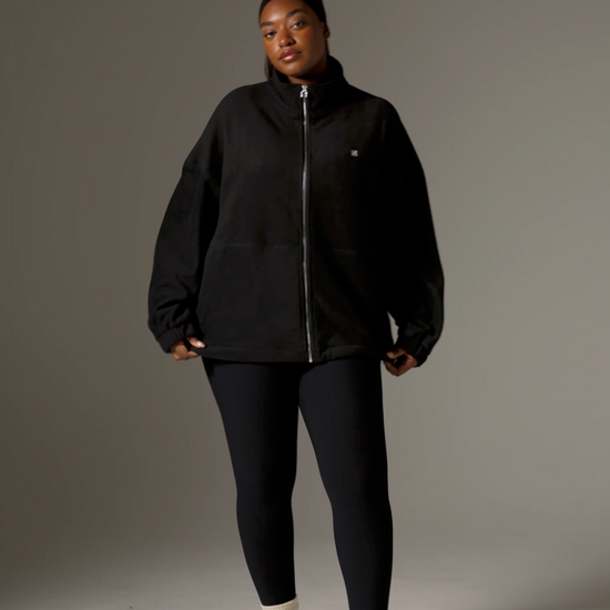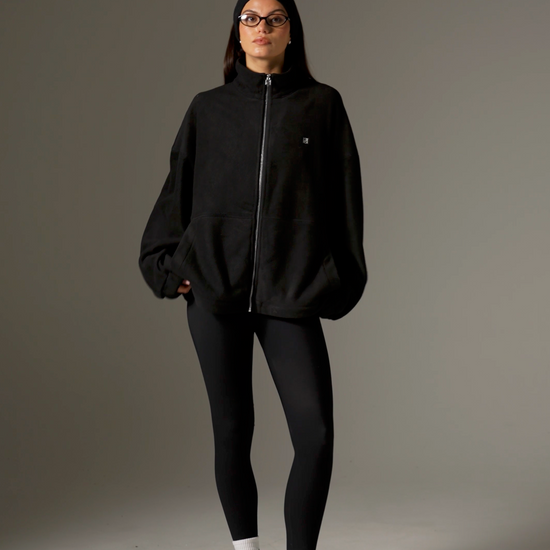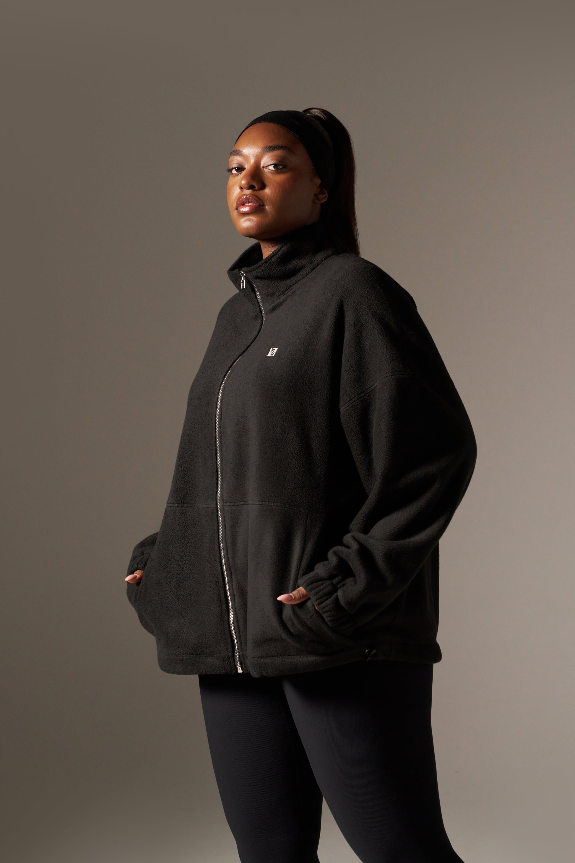 Oversized Fleece Zip Through Elasticated Jacket - Core Black