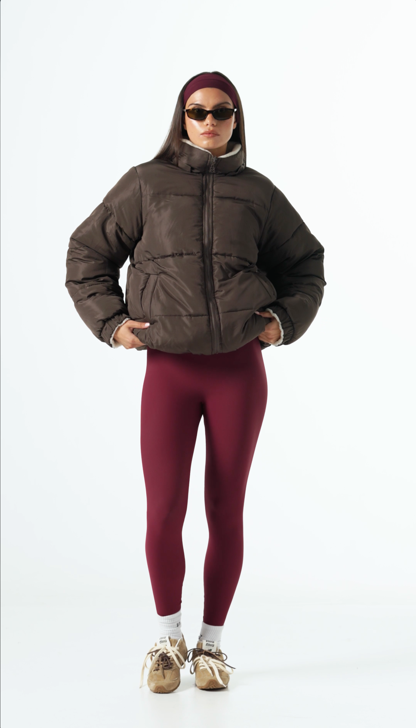 The Multiway Reversible Puffer Coat in Espresso delivers versatile style with two distinct looks in one. Featuring a soft Borg lining, an emblem zipper, and side pockets, it balances function and fashion. An adjustable toggle allows a tailored fit, while the removable hood offers additional styling options. The high neck design provides warmth and a polished silhouette, making this coat your go to choice season after season.
