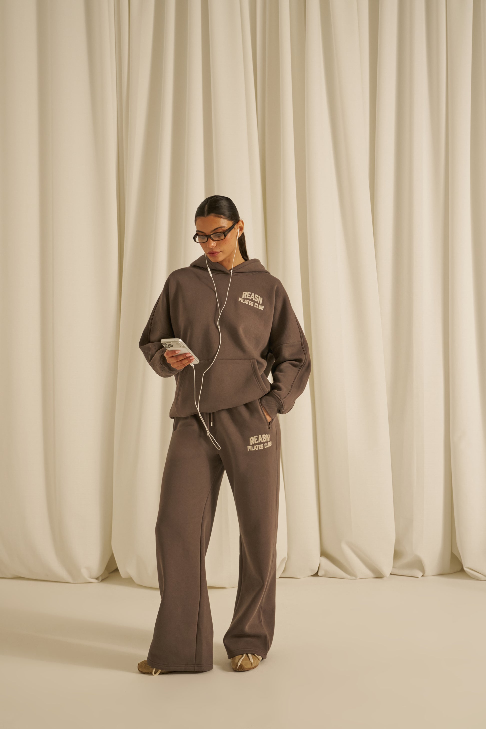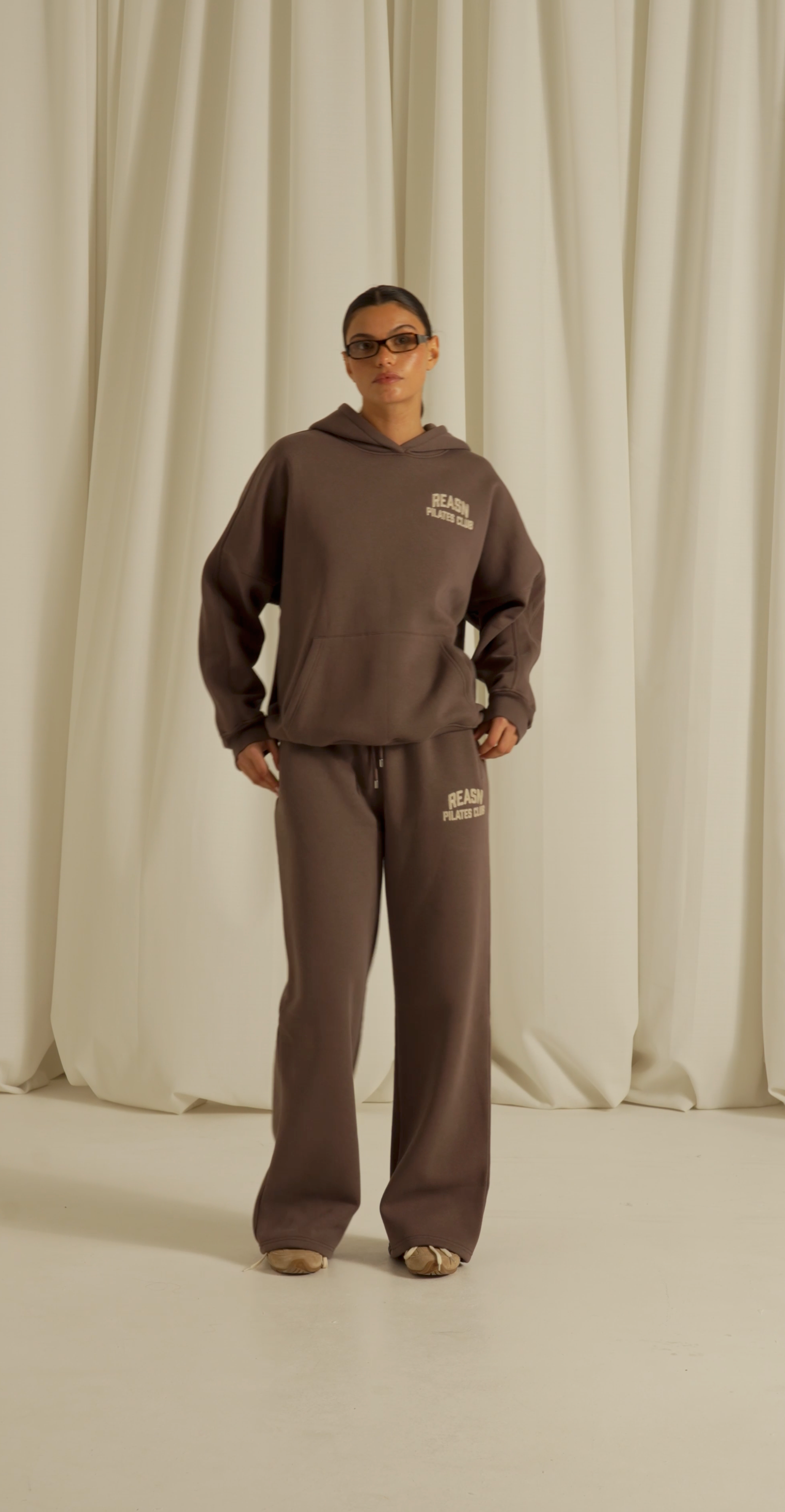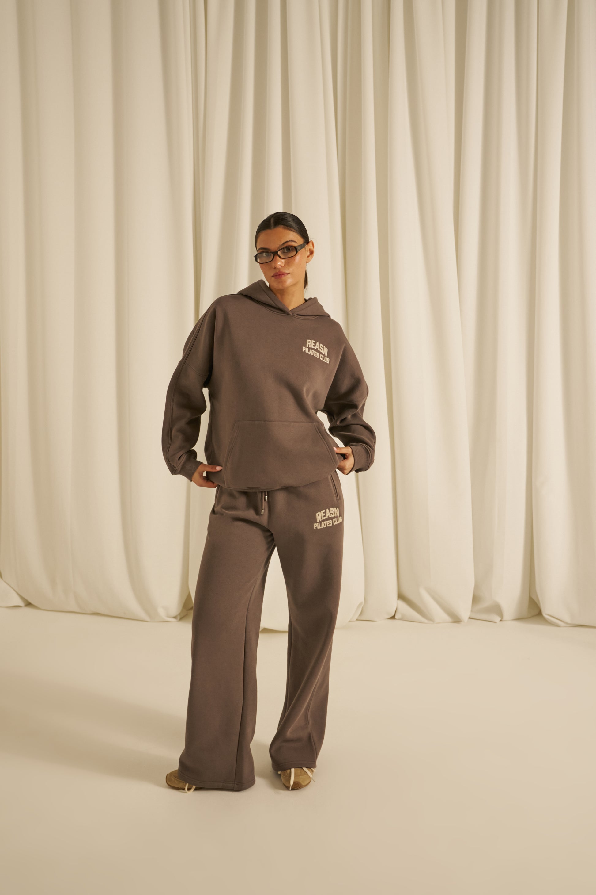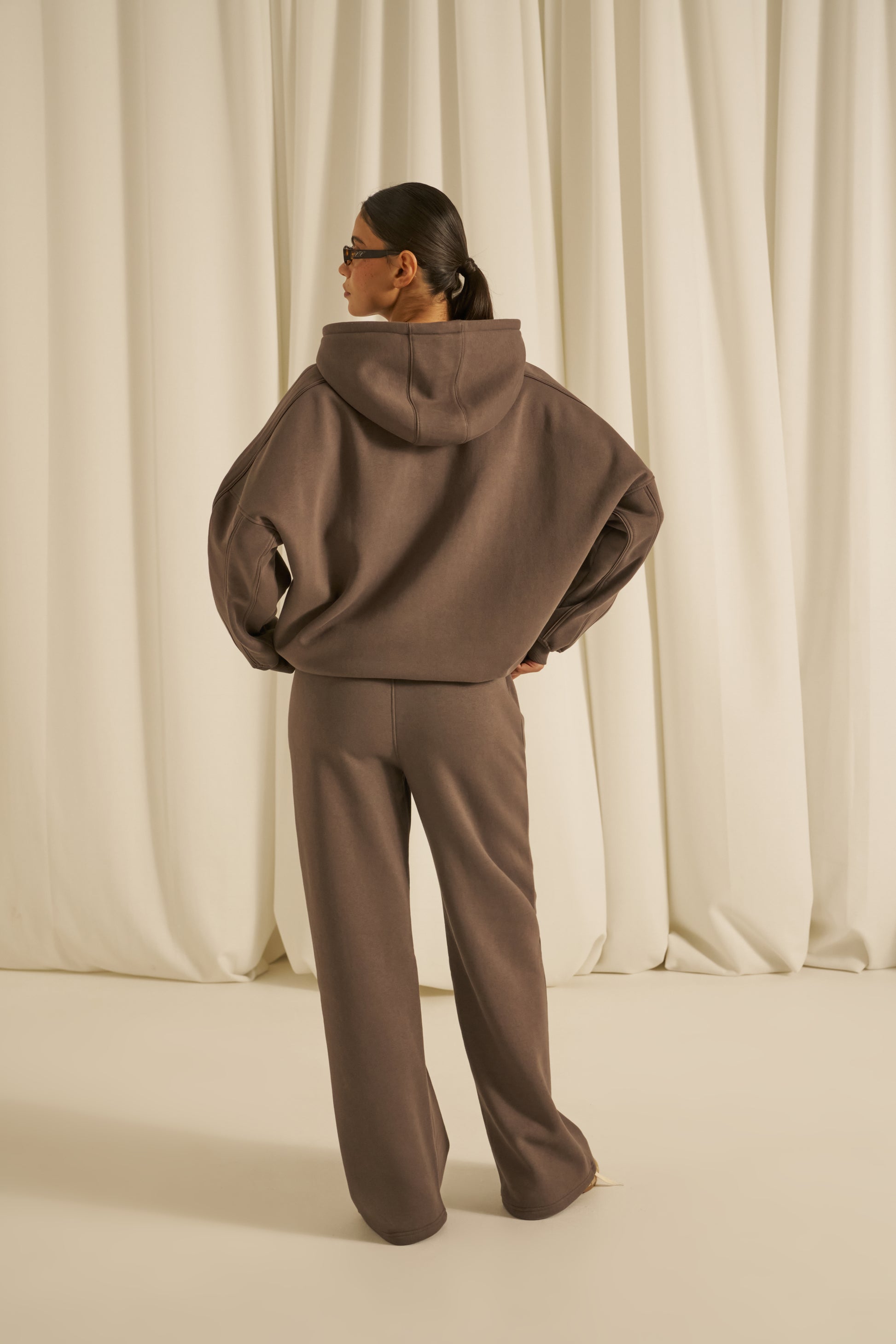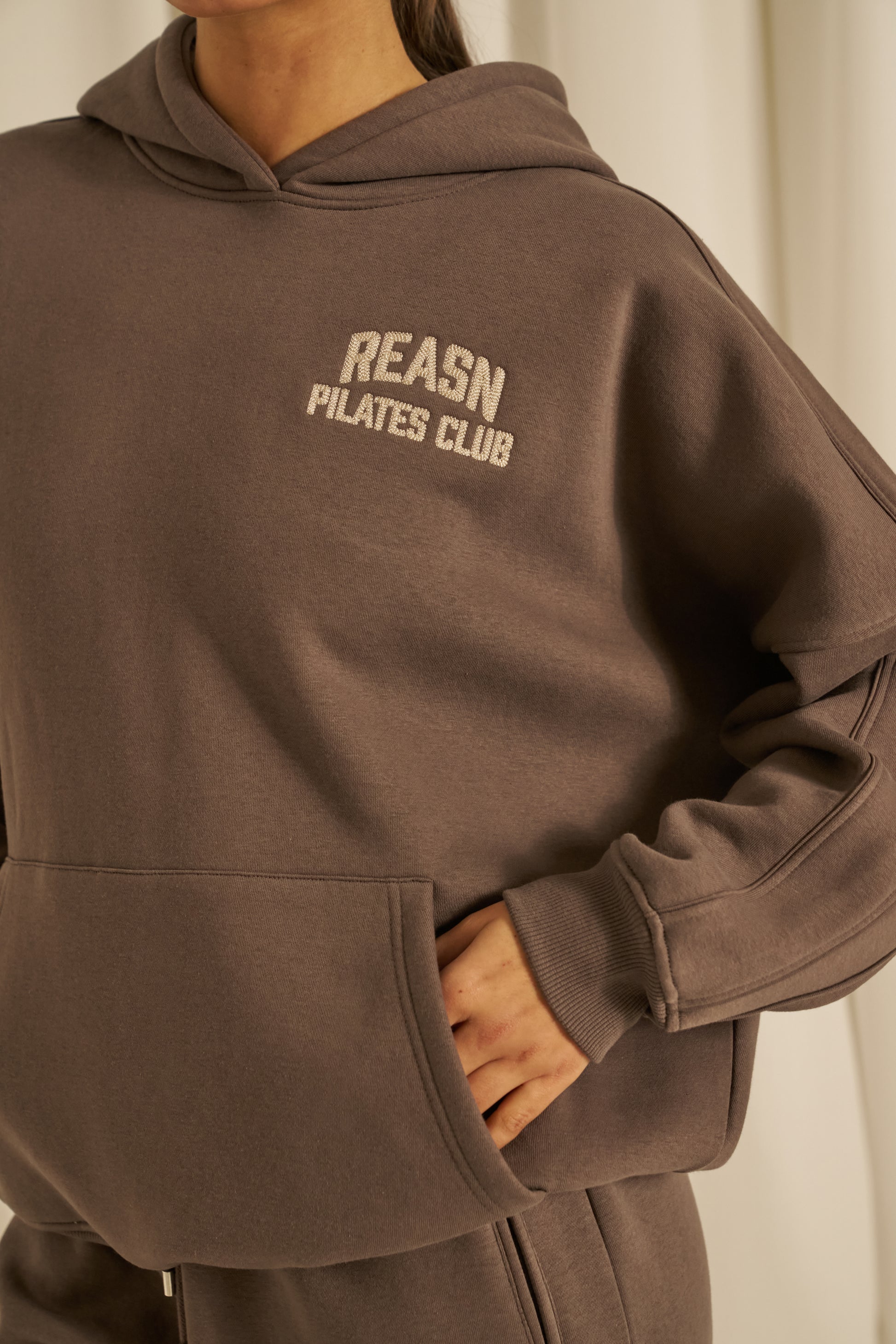 This classic oversized hoodie offers a comfortable, relaxed fit with tonal seams that add subtle refinement. Featuring a kangaroo pocket for convenience and a chainstitch graphic, it delivers a timeless, understated style. Pair it with our matching plum truffle joggers to create a cohesive, polished outfit.