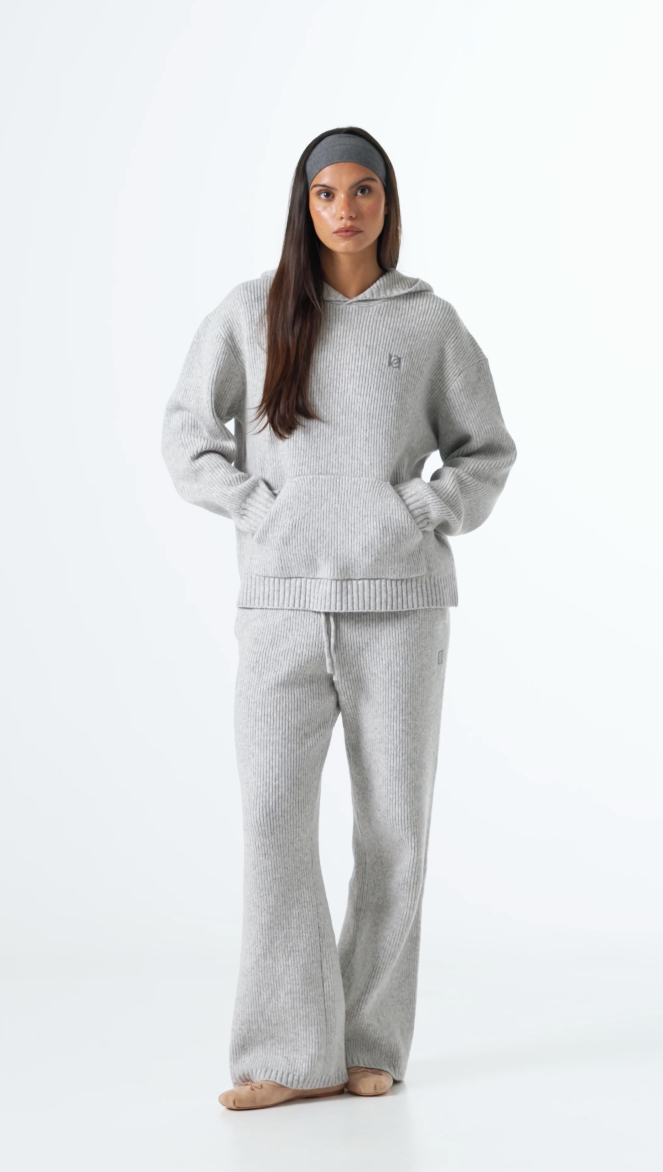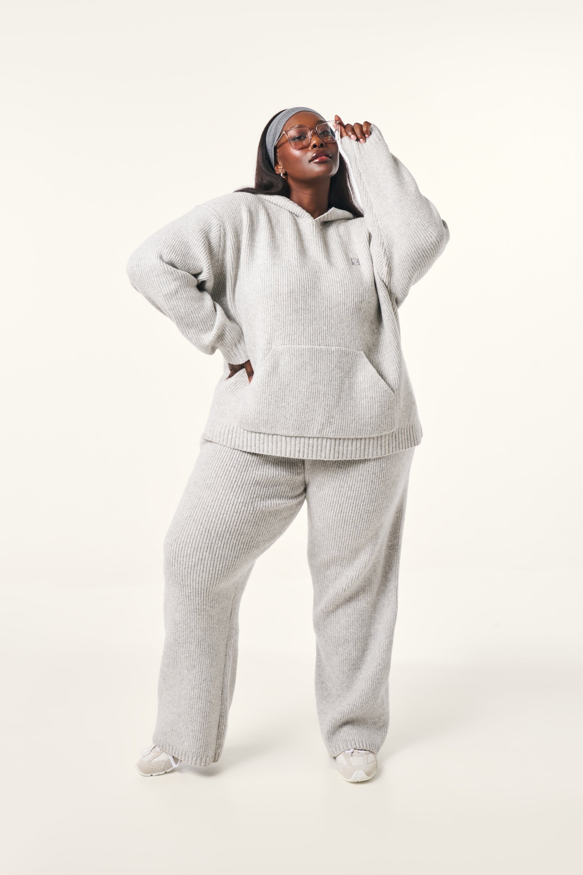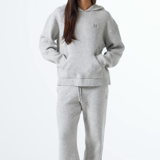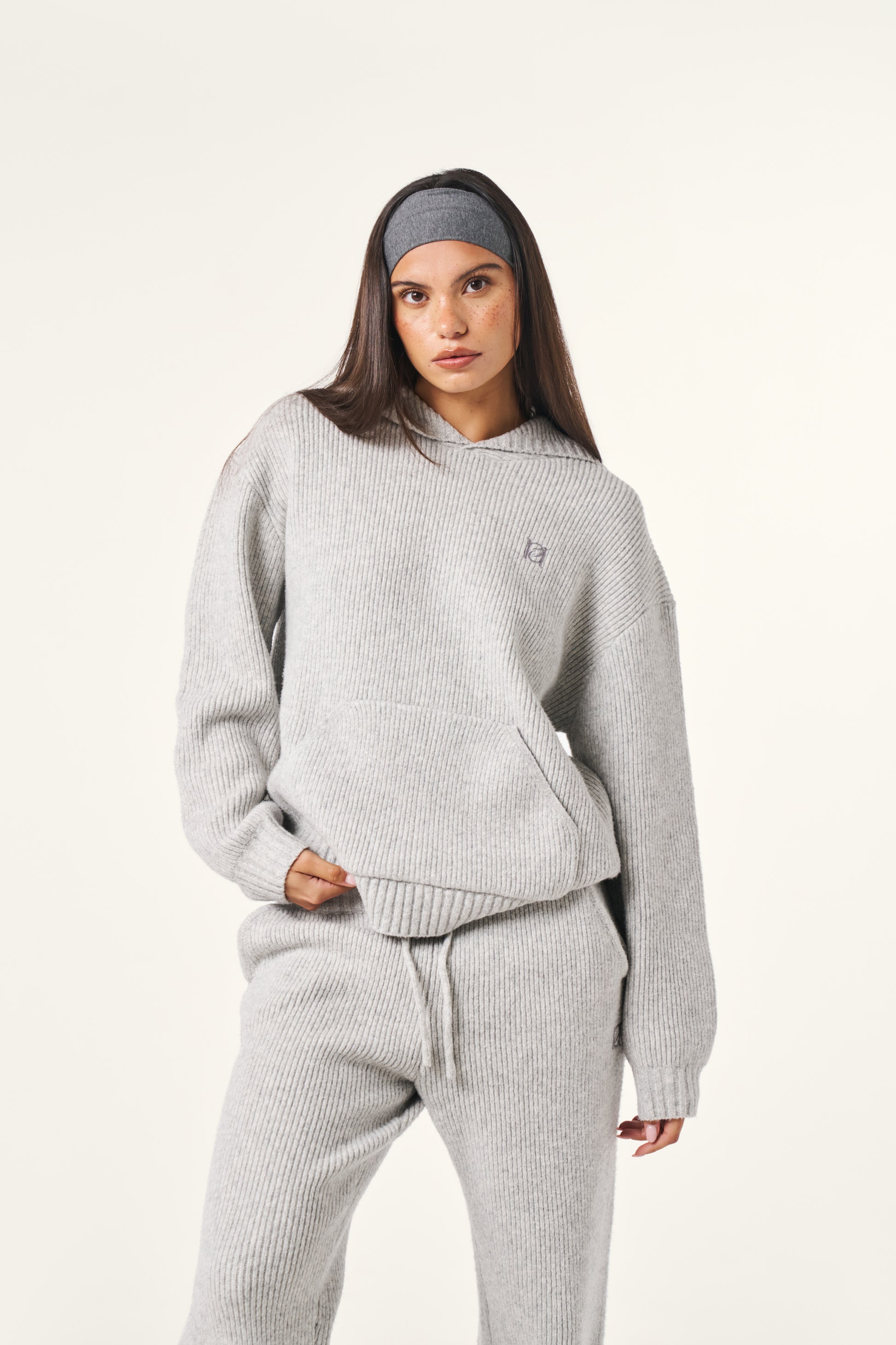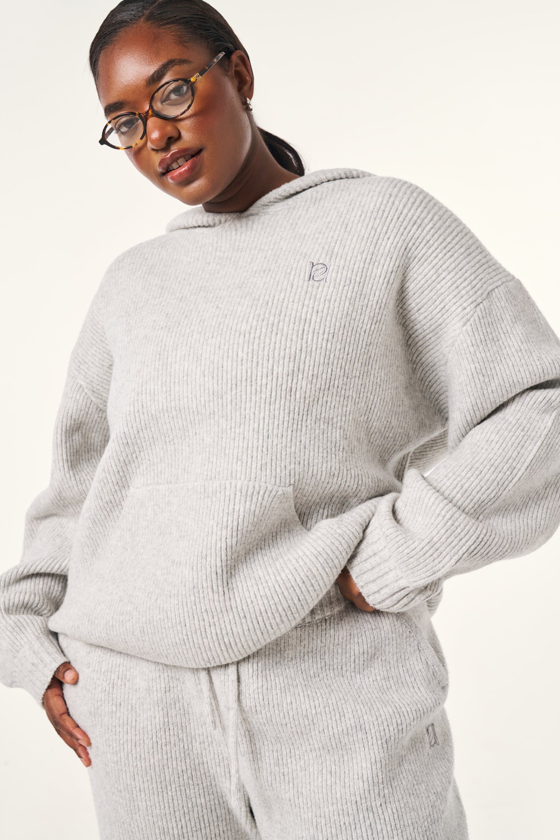 Crafted from a premium yarn blend combining cotton, wool and recycled fibers this Oversized Premium Knitted Hoodie in Grey Marl offers exceptional comfort. Designed with a super cosy fit, it features a kangaroo pocket and a hood with a tonal emblem for subtle branding. Its versatile design ensures it remains a timeless staple, perfect for layering and wearing season after season with confidence. Pair with our matching premium knitted trousers or sculpt leggings to complete the look.