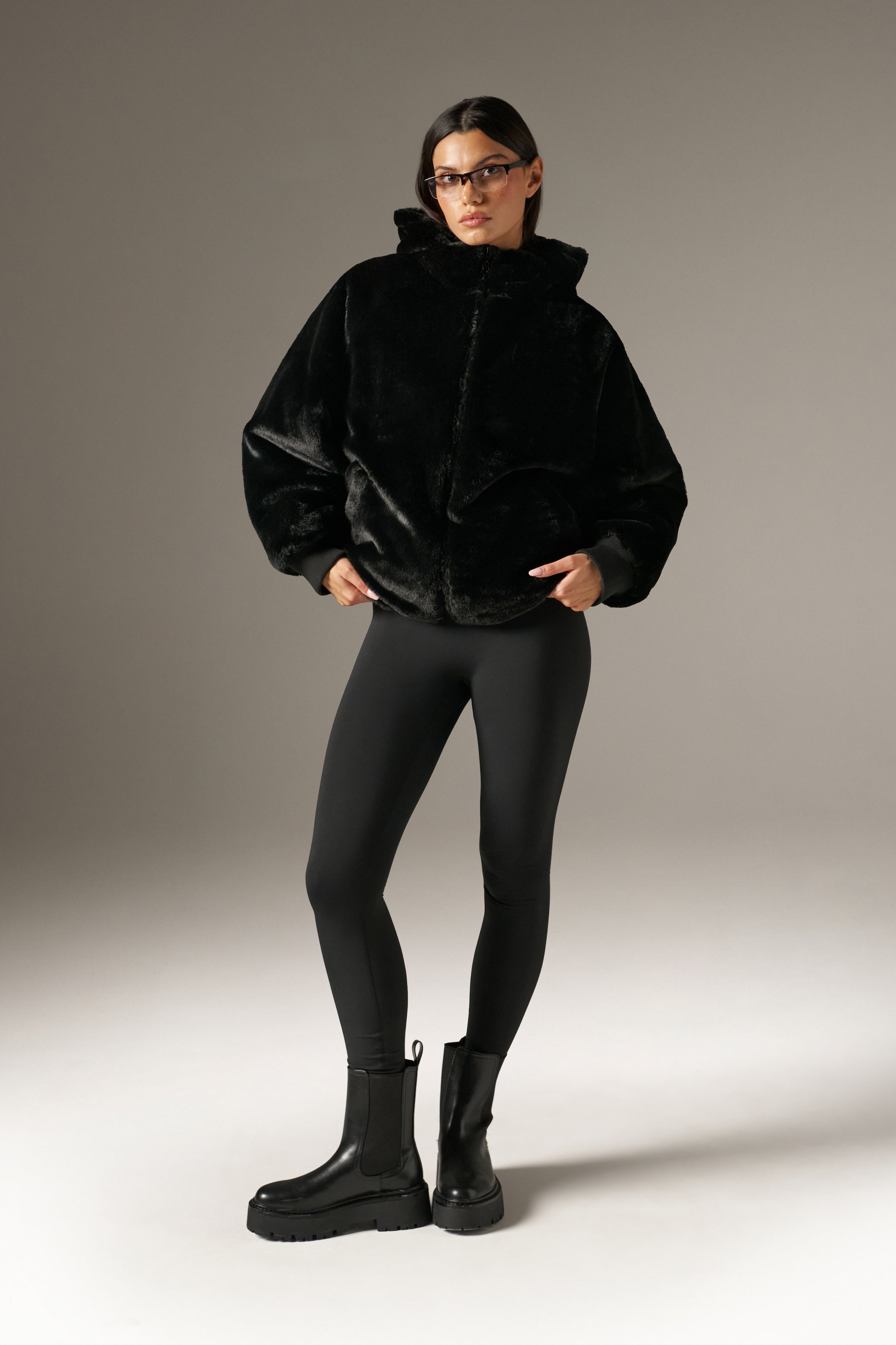 Introducing the Reversible Faux Fur Coat in Core Black - a versatile and stylish addition to your wardrobe. Made with high-quality faux fur, this coat offers ultimate warmth and comfort. With a reversible design and sleek black color, it's perfect for any occasion. Upgrade your outerwear game with this must-have coat.