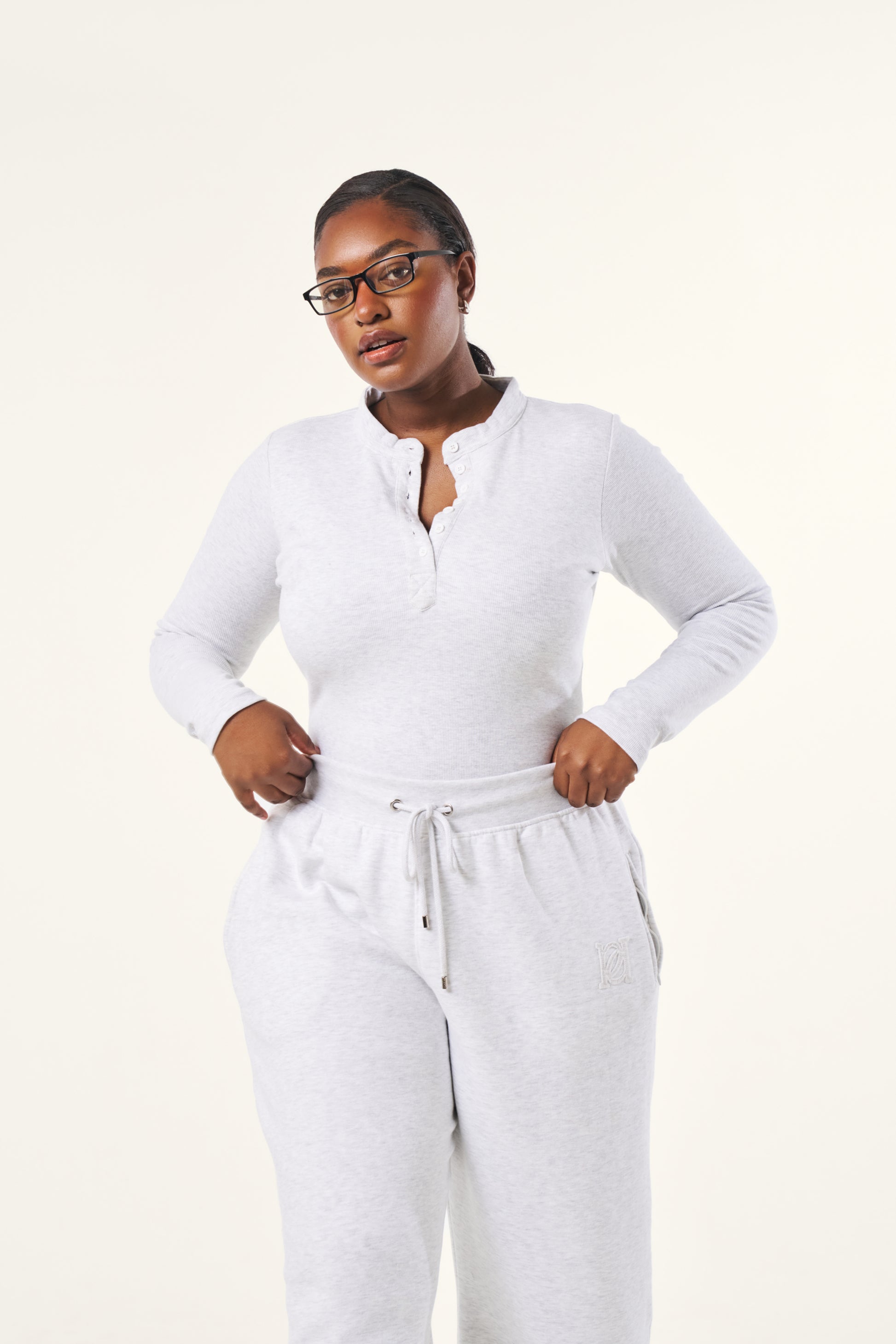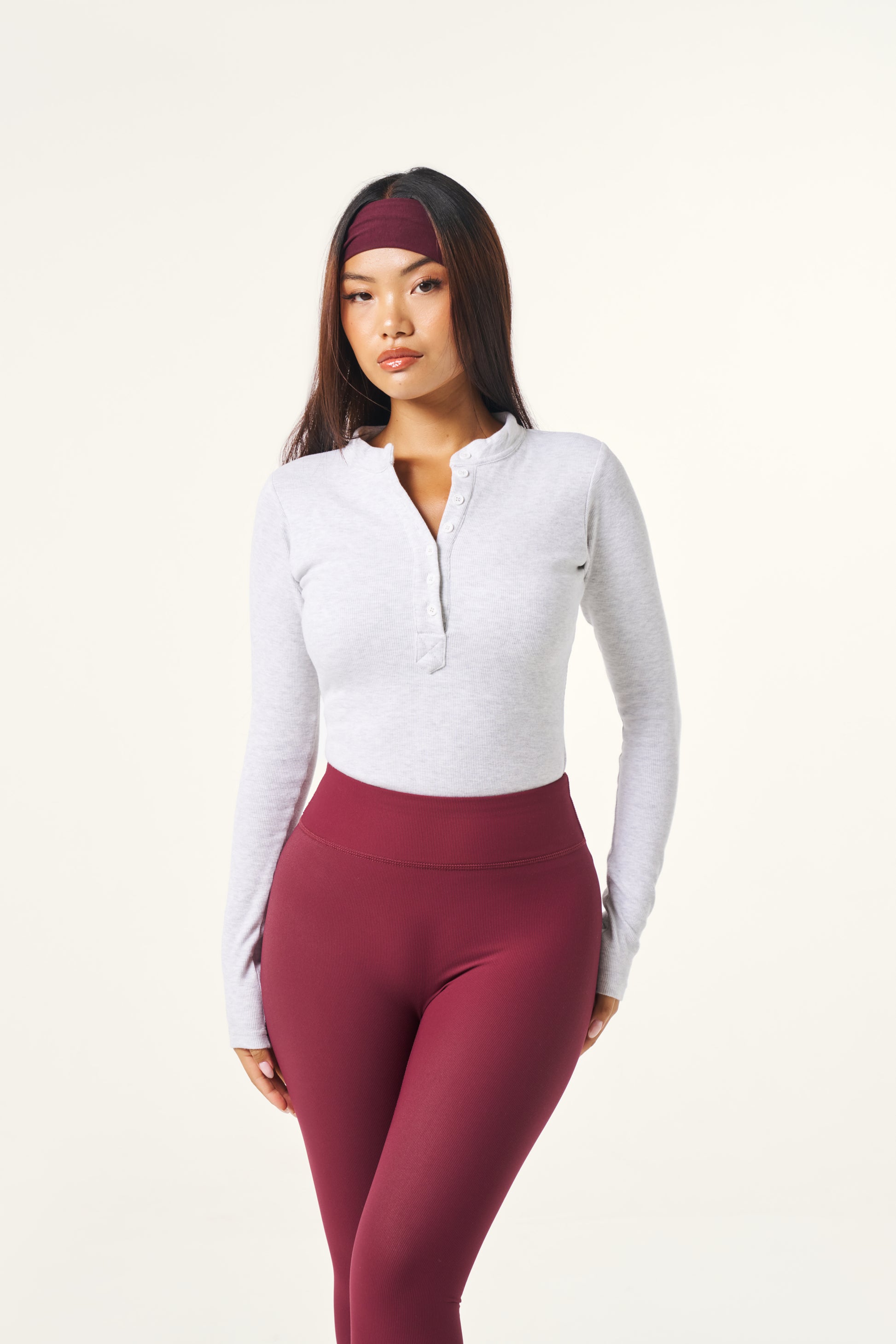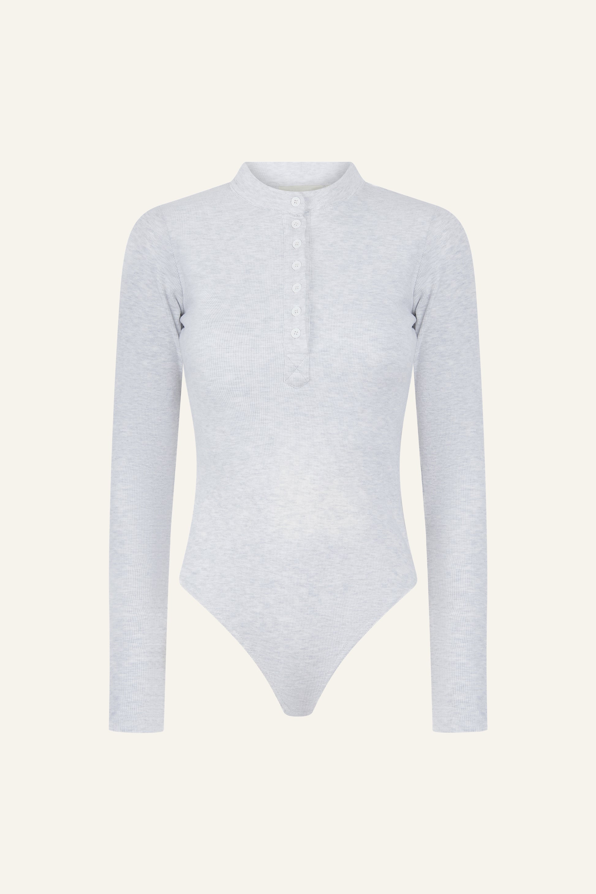 Ribbed Button Front Built in Bra Bodysuit - Grey Marl