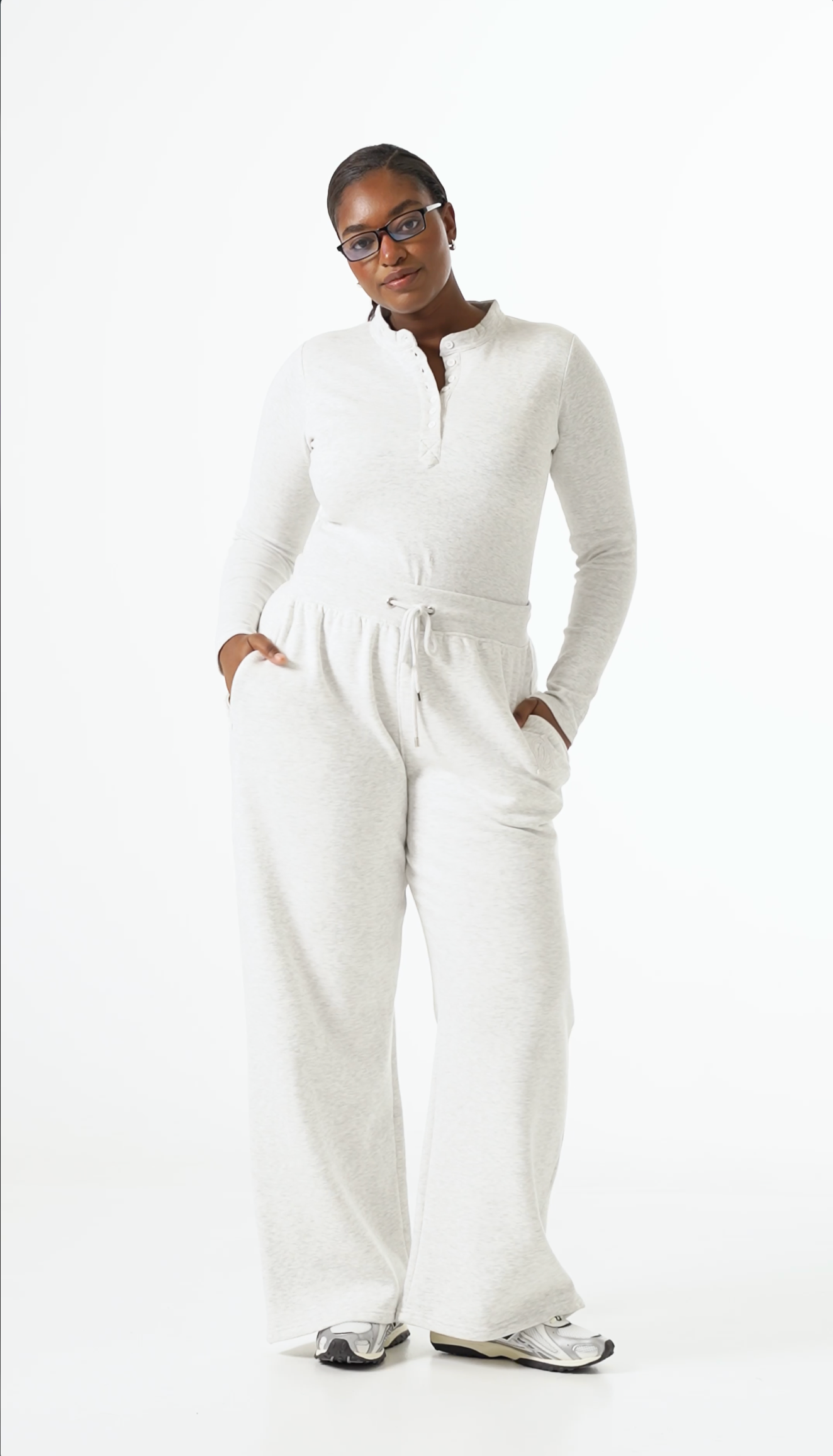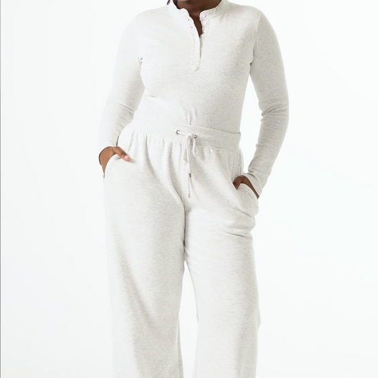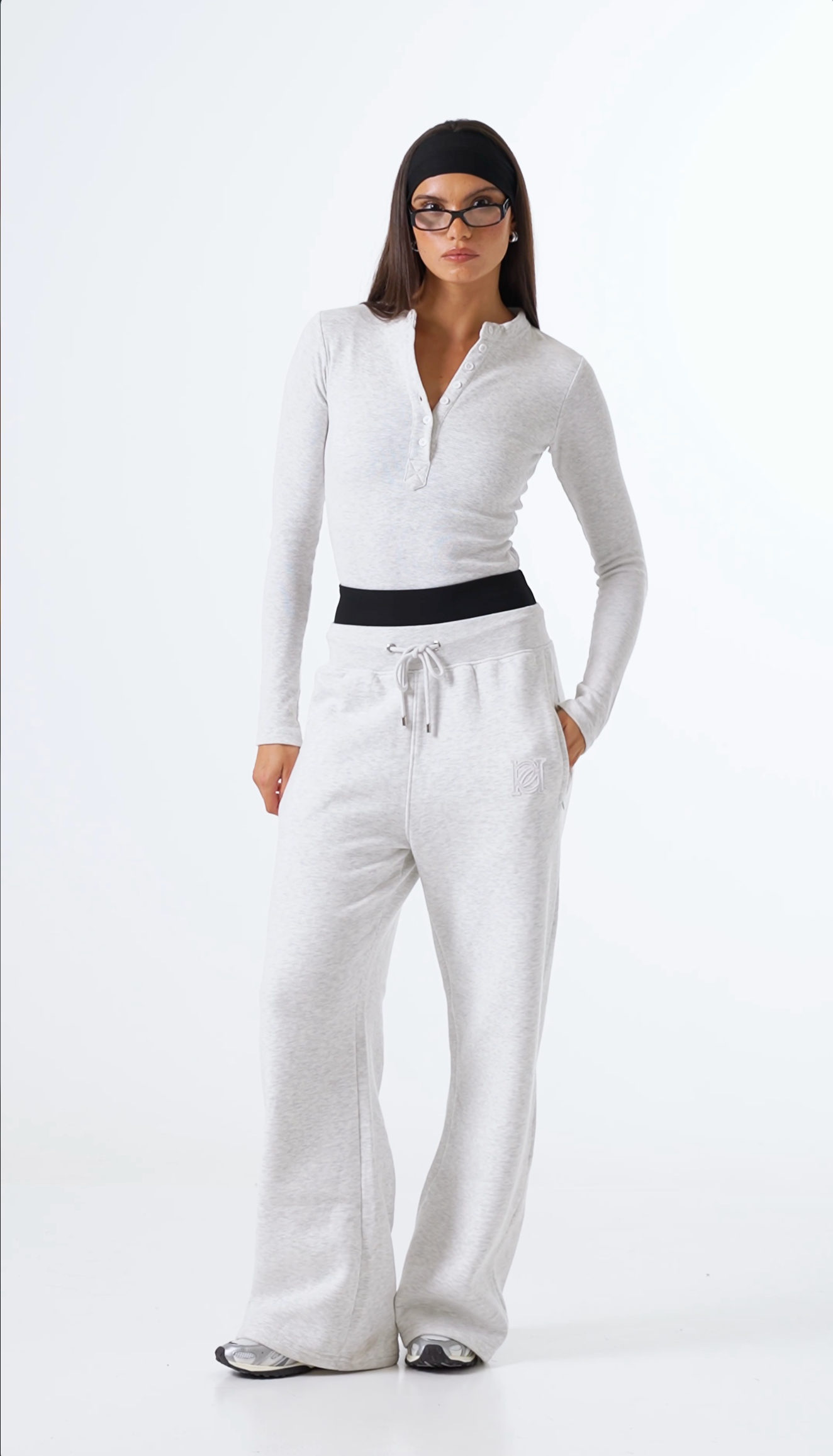 Ribbed Button Front Built in Bra Bodysuit - Grey Marl