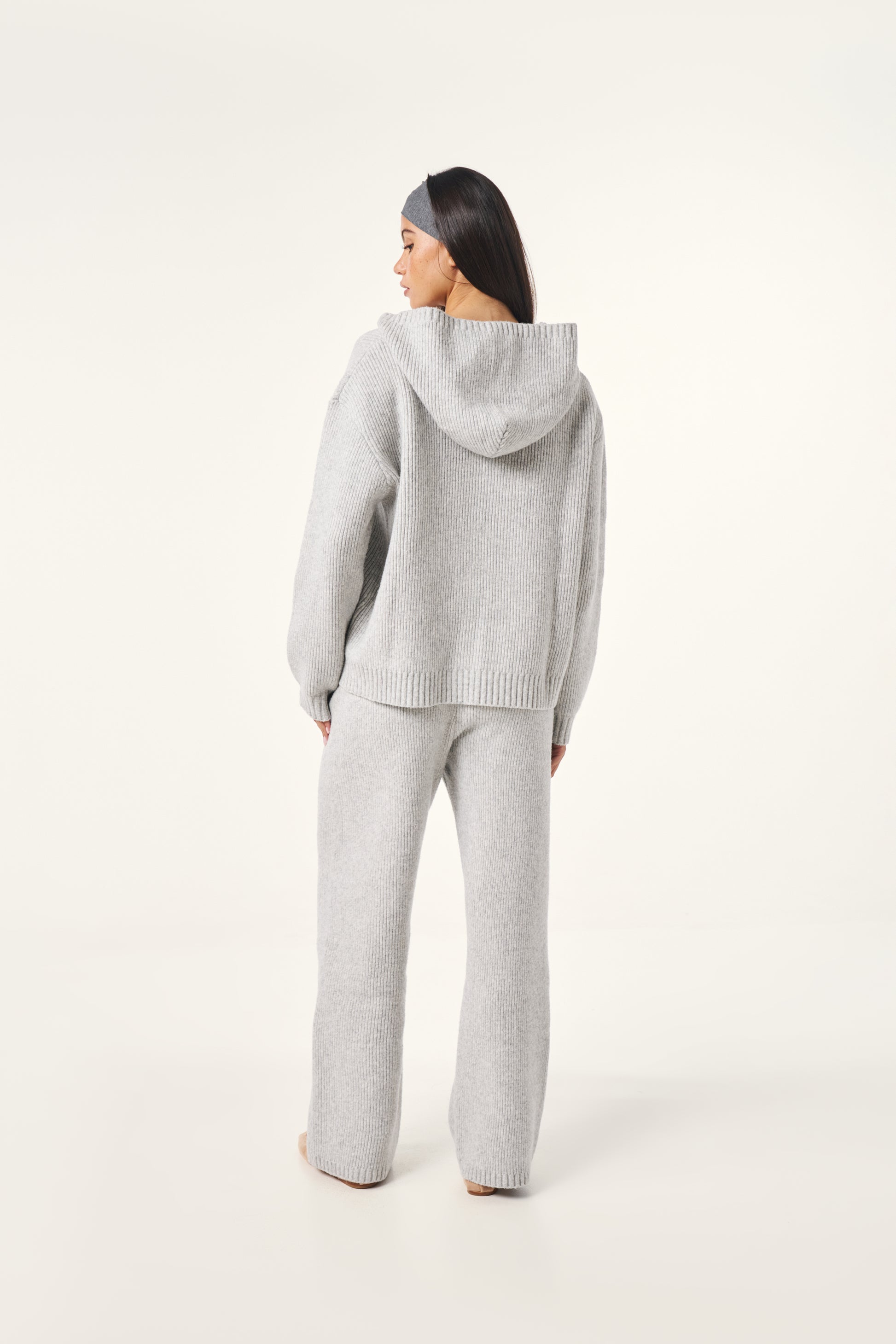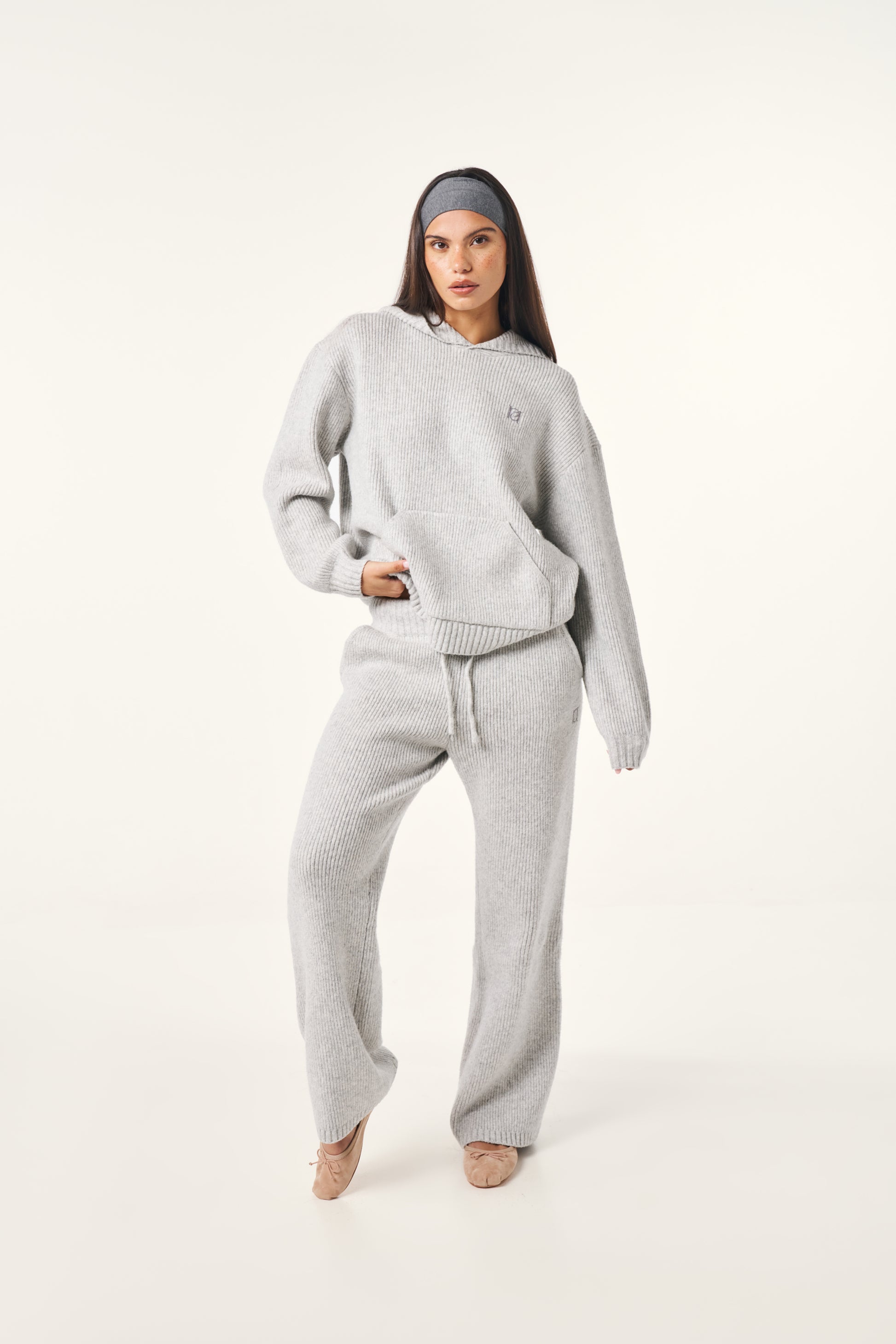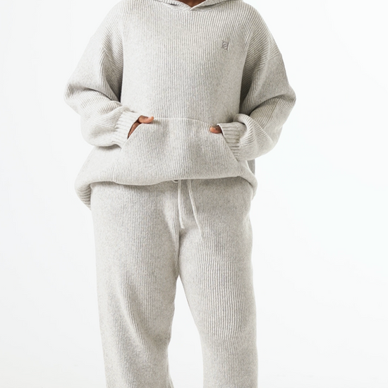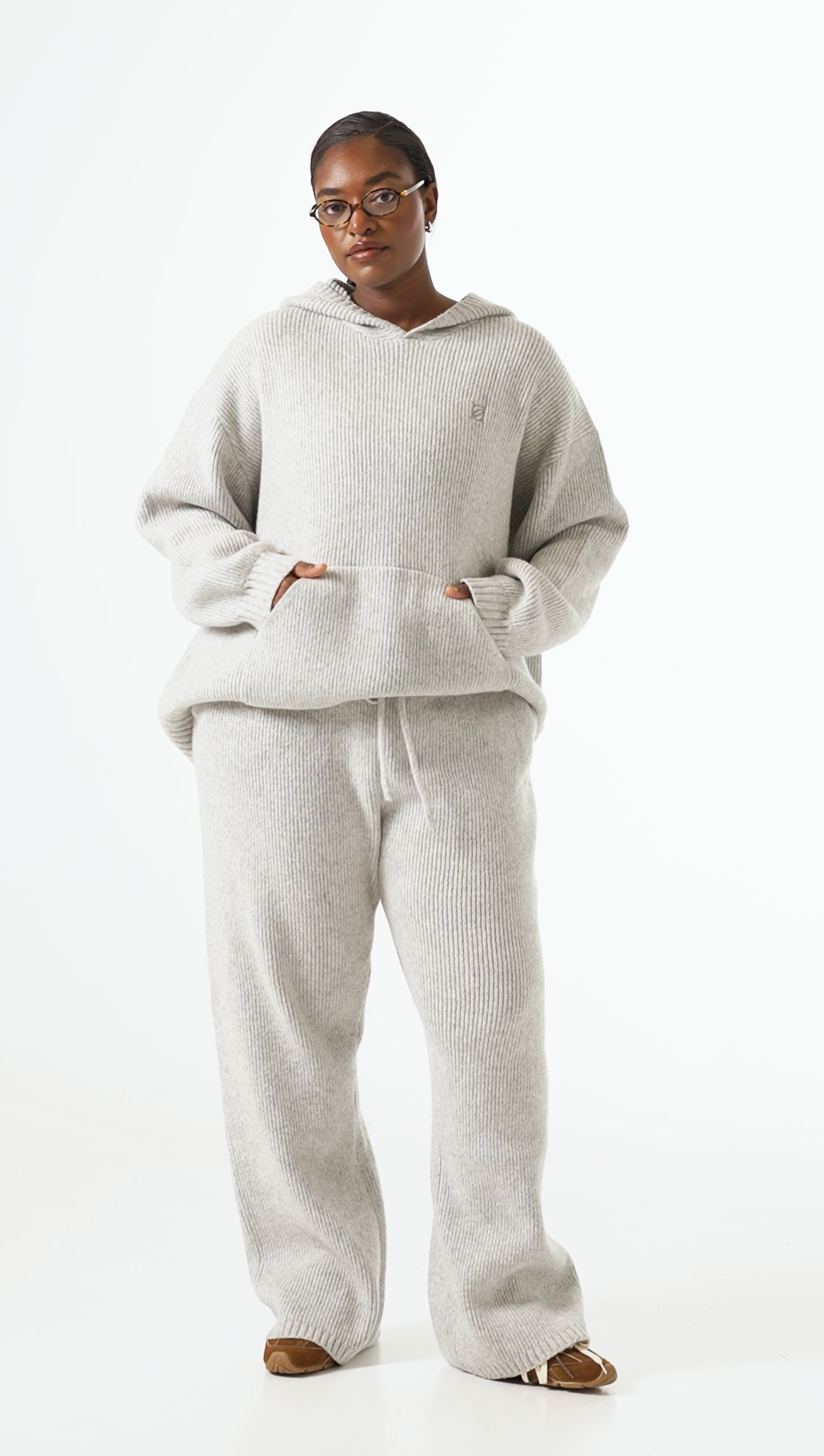 Experience comfort with these Wide Leg Premium Knitted Trousers in Grey Marl. Crafted from a soft cotton wool blend yarn with recycled content, they offer a relaxed, cozy fit that moves with you. The high waist features an adjustable tie for a personalised fit, and pockets that complete this versatile piece. Perfect for both lounging and casual outings. Pair with the matching premium knitted hoodie to complete the look.