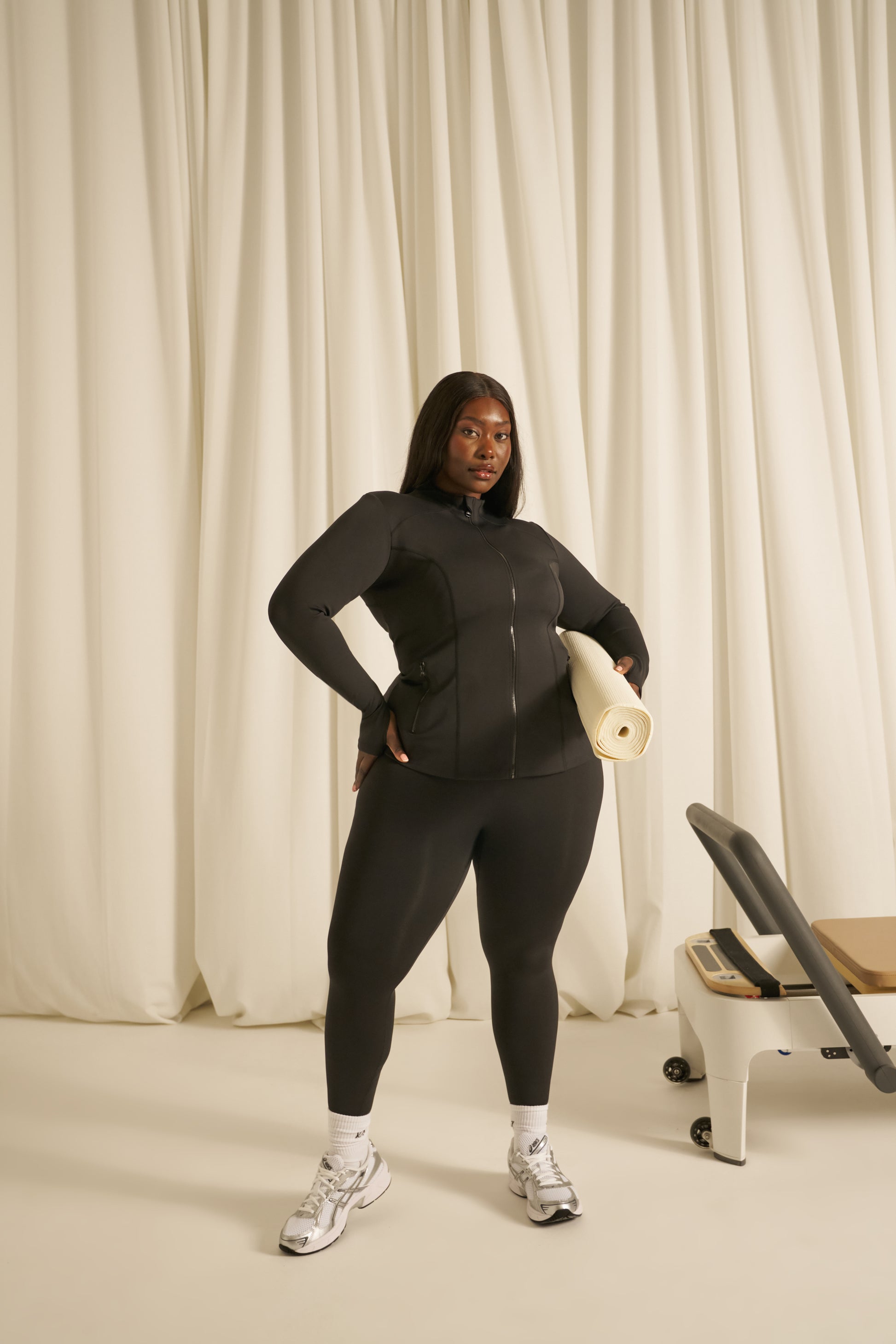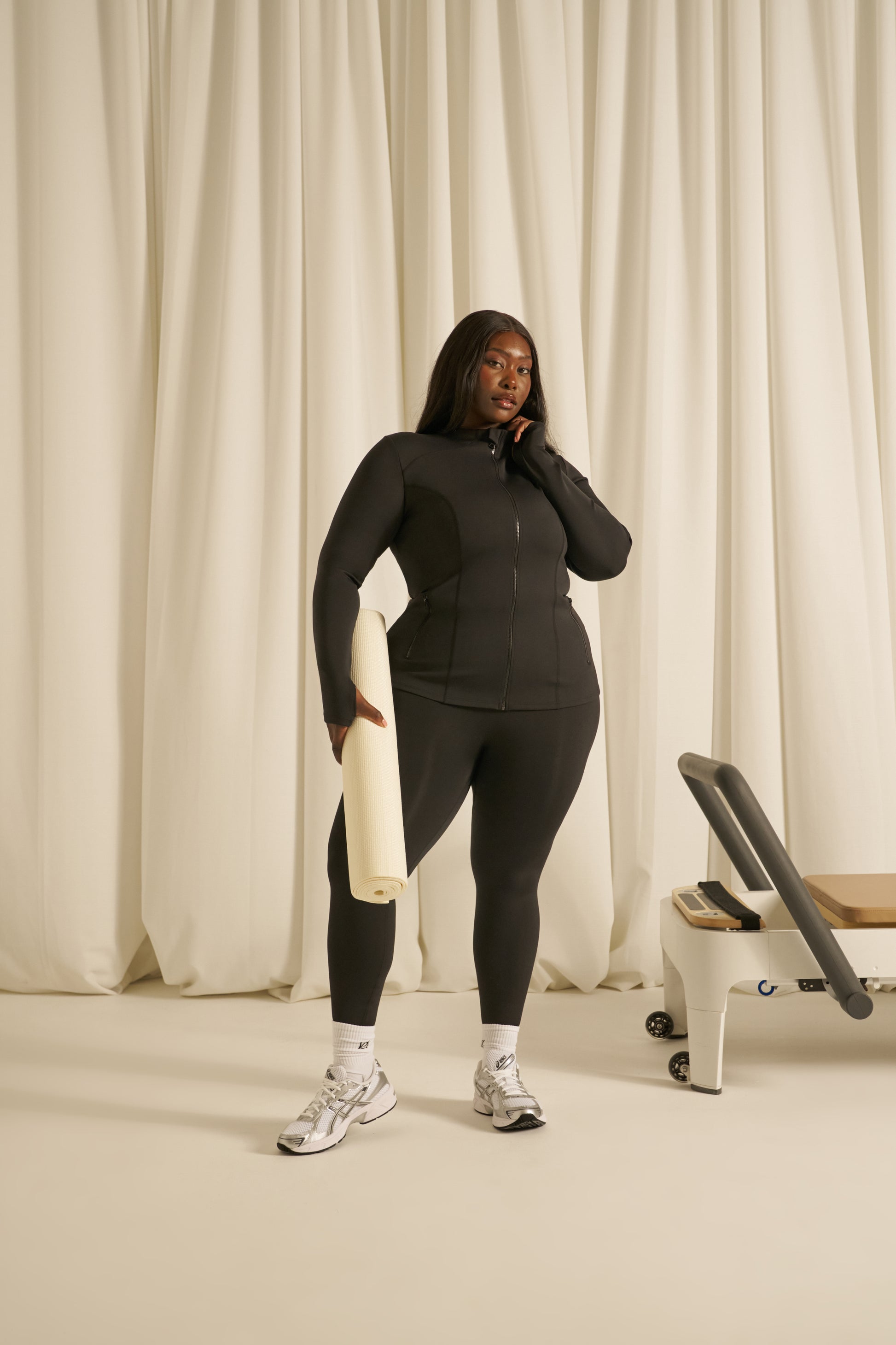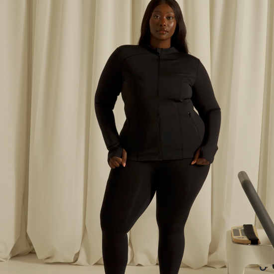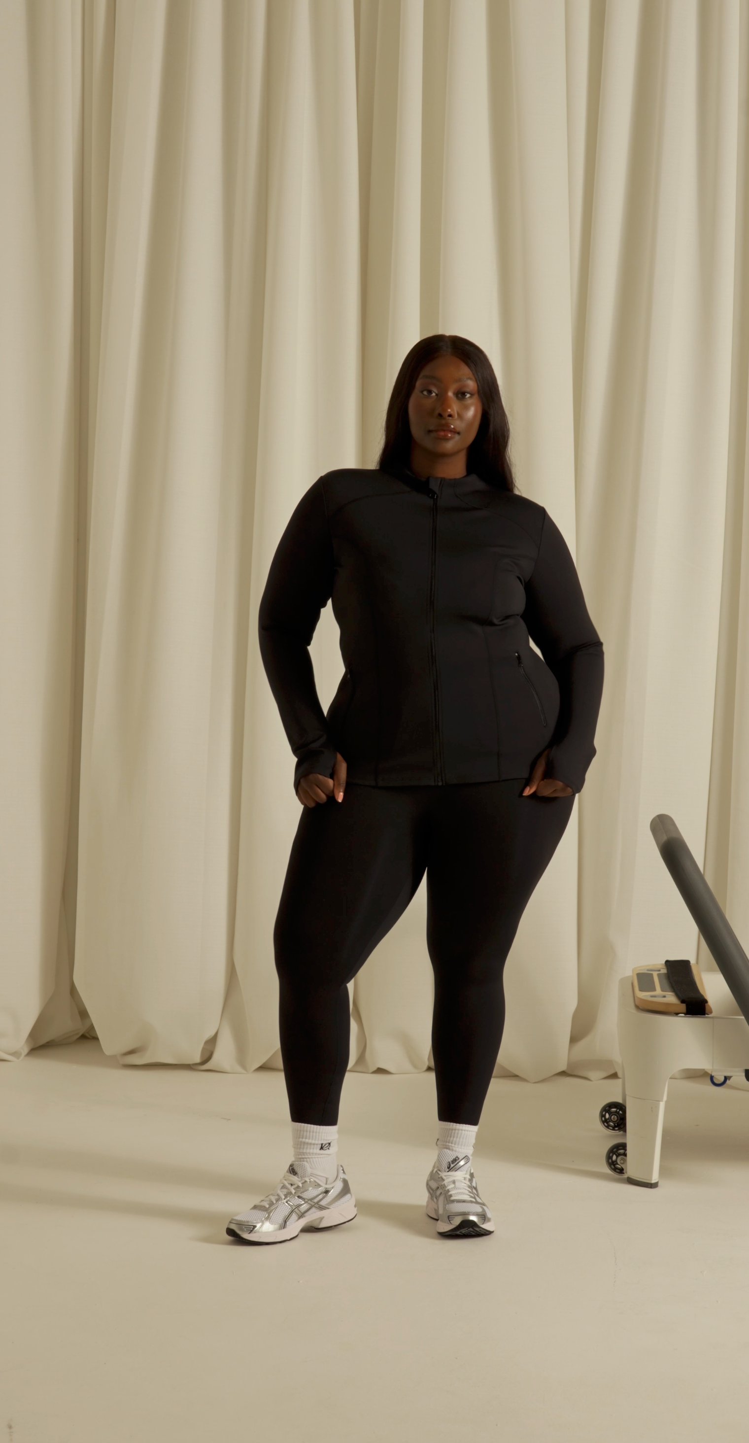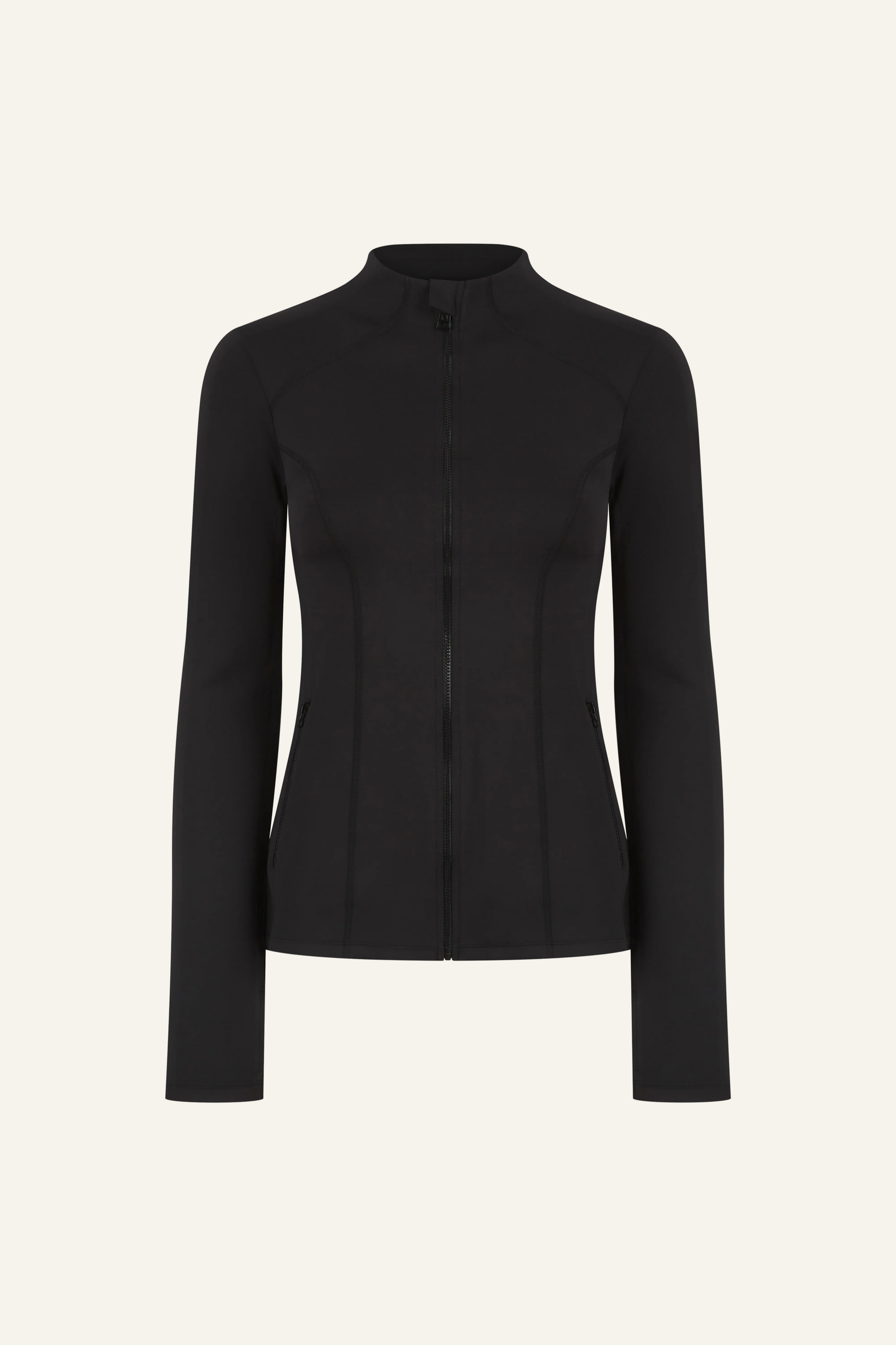 Engineered in our smoothform fabric with sculpting seams that define and enhance your silhouette, this zip-through jacket delivers both style and performance. The signature emblem-engraved zipper adds a refined detail, while functional pockets keep essentials within reach during your workout. Crafted in core black for versatile layering, it's the essential piece that elevates any active outfit.